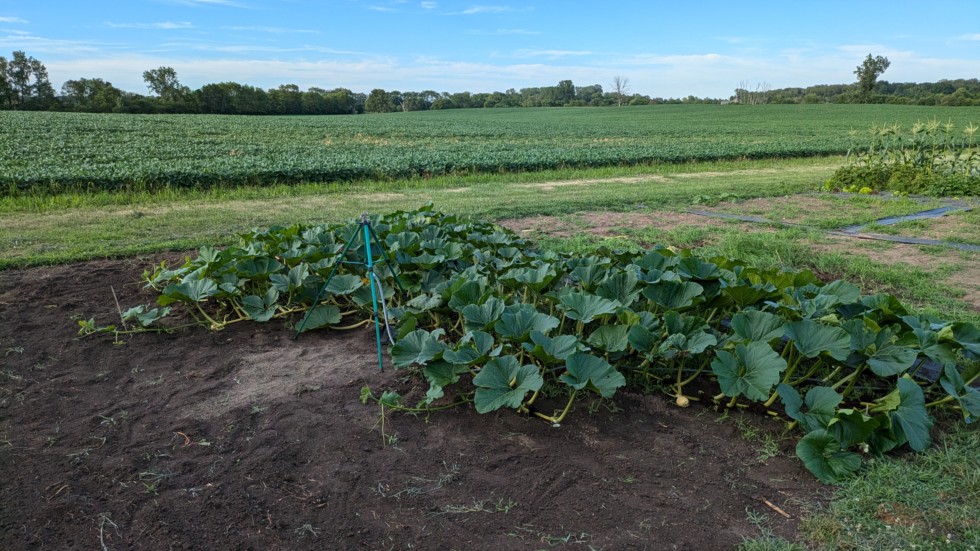 2054 Strickler is all pruned up and nodes covered. Also did a root drench insecticide for good measure. I saw an SVB out there today but neither plant was infested anywhere that I can see.