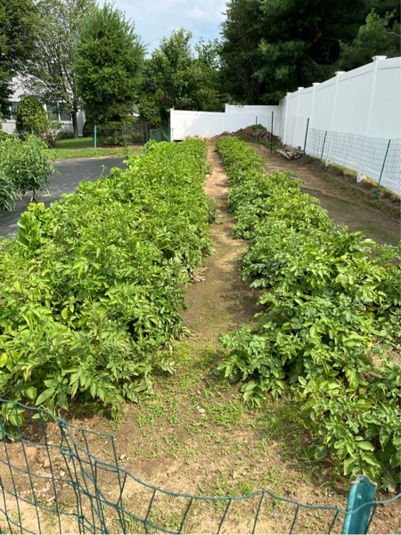 My potatoes have taken a beating in the recent thunderstorms. Hopefully they are bulking up those tubers.