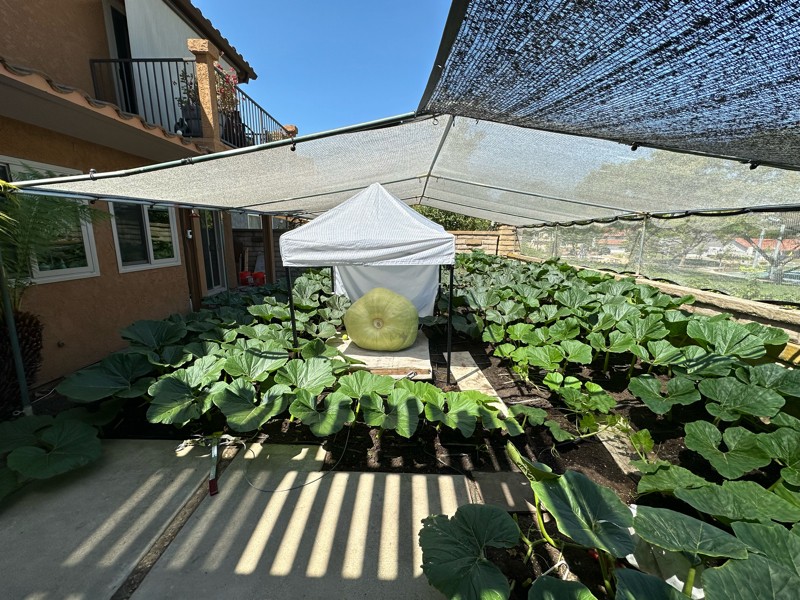 The patch is nearly full now - about 500 square feet. I've got more plant past the fruit than ever. The main extends about 25 feet beyond the squash.