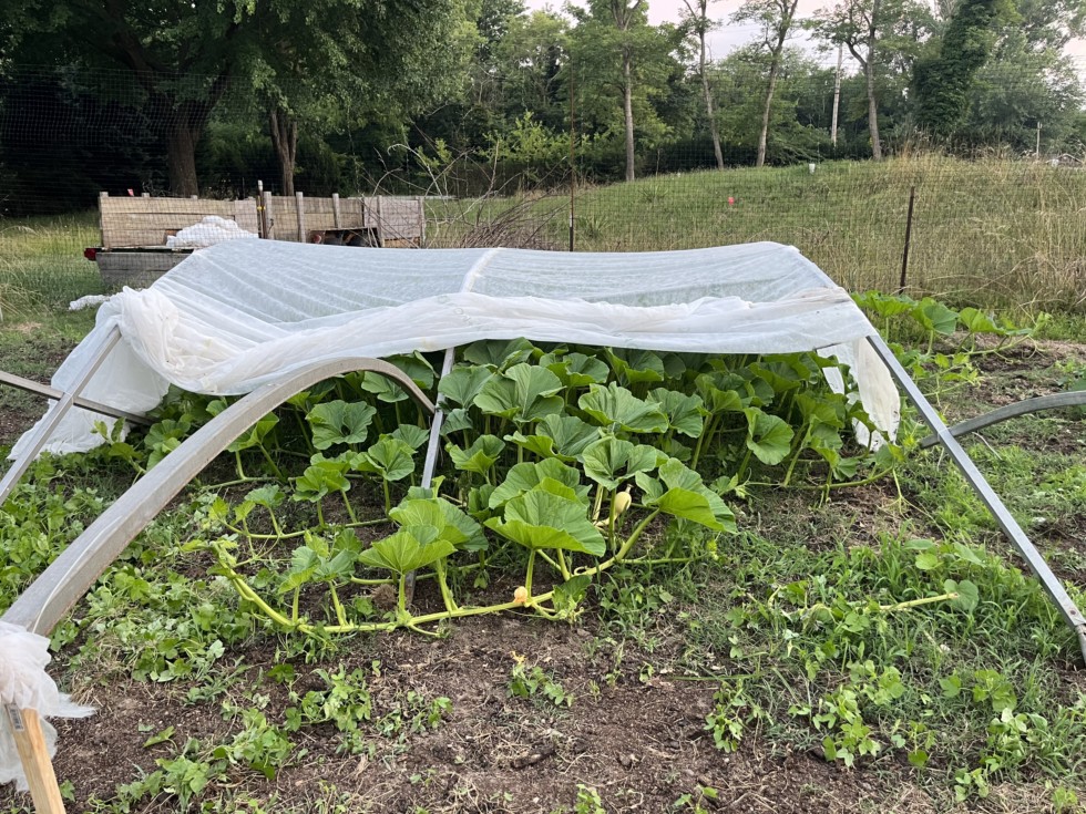 Expanded the cover on the 2501 Bernstrom plant this evening. Humidity was at approx. eleventy zillion percent. You can see the 5 day old fruit over there somewhere in all the weeds