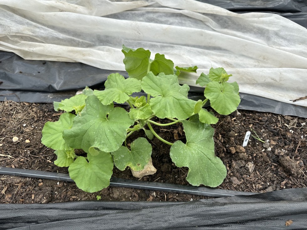 Cantaloupe sowing from 1st June, aiming for end Sept. Growing fast, but timing is going to be very much dependent on weather. Pictured is the 76.12 Prochaska.