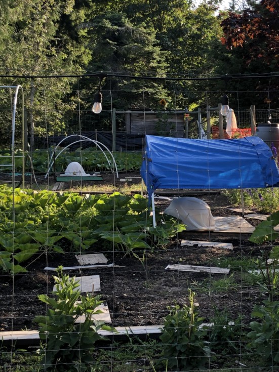 Shade/water hooptie hut installed and covered over the 839 Sandercock and the frame was installed in the upper portion of the patch for the 1995.5 Hoornstra pumpkin.