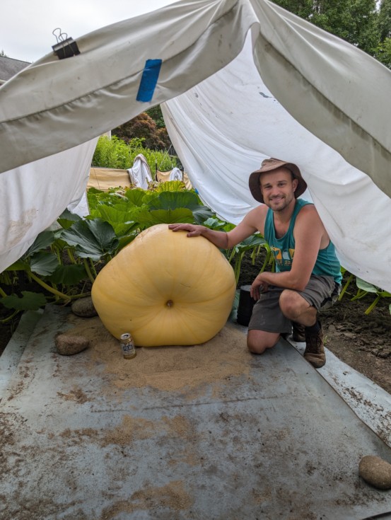 The 2480 pumpkin is 28 days old, 281 lbs, 5-day average 42 lbs a day. It has some scarring from my mishandling when it was younger but they look okay.