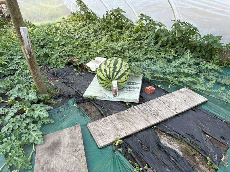 202 Crews watermelon 45 Dap 56.5� Only grew .5�. The leaves on the vine look good but I'm sure of what's wrong.