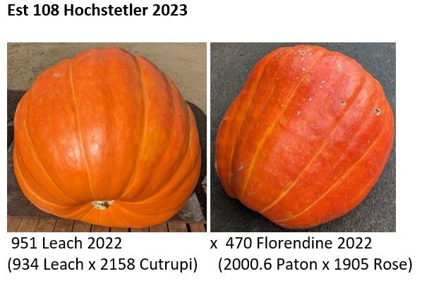 One was pollinated with the 632 Hochstetler (my daughters 150 sq. ft. pumpkin which was 1120 Wolf x 2045 Daho) .