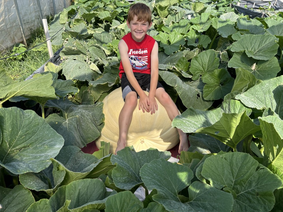 Fulton's 150 sq ft pumpkin is doing well. Around dap 27 and measuring 240 lbs.