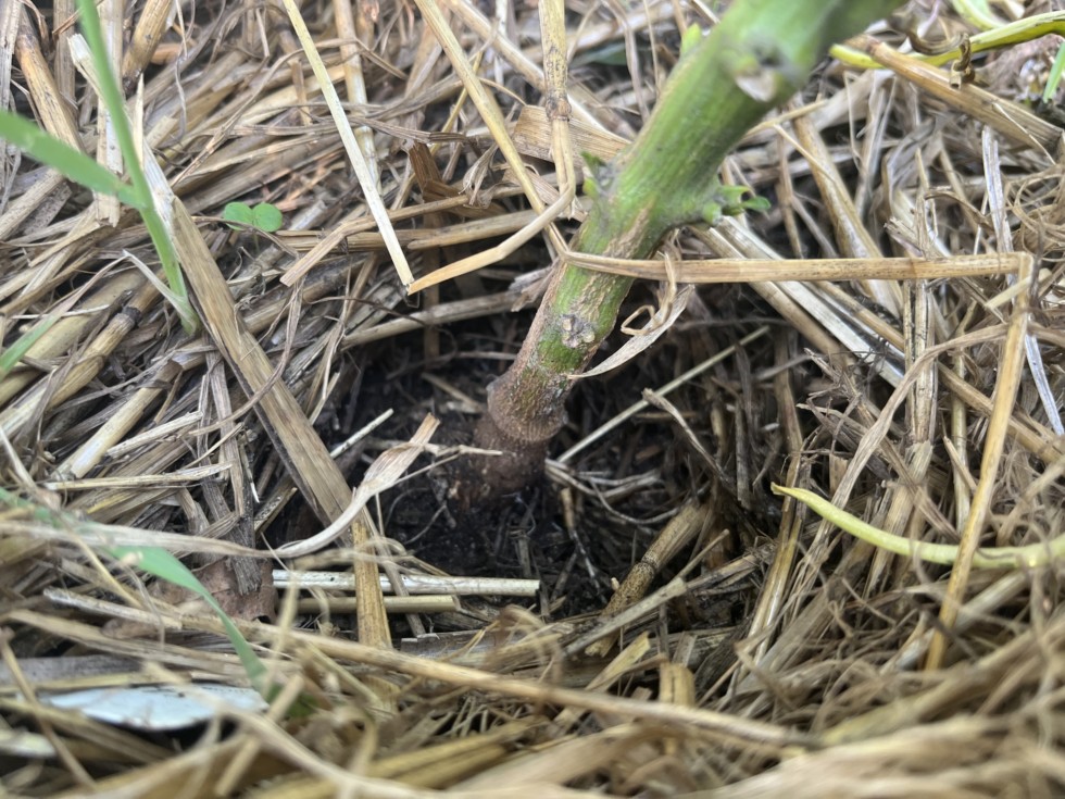 We pulled the mulch back a bit from the pepper plants. Bases looked solid with no visible mold. Who knows, perhaps mold in the roots, or just over watering.