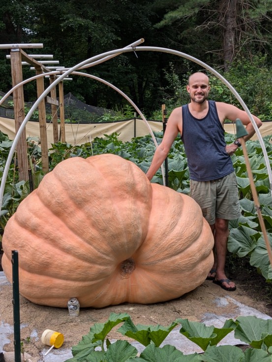 Thunder Shark (1832.5 Graham) is 60 days old, 1631 lbs, and growing 21.2 lbs a day (5-day average). The blossom end split keeps on growing but I've been adding Lexel caulk most days. Its elasticity is helping it stretch and keep the split sealed as she grows. Still planning on keeping her going as far as I can. Also had to remove the crown today due to rot.