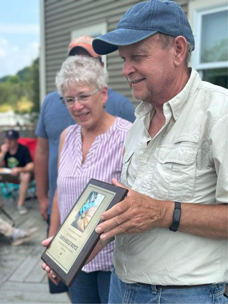 Our Vermont club has been around for 22 years and the board of directors decided to start a hall of fame in 2023. Last year a very deserving Kevin Companion was our first inductee. This year the club recognized Dan and Holly Boyce as hall of fame inductees. They not only own the largest pumpkin grown in Vermont, they all served in many board positions including President. Congratulations!