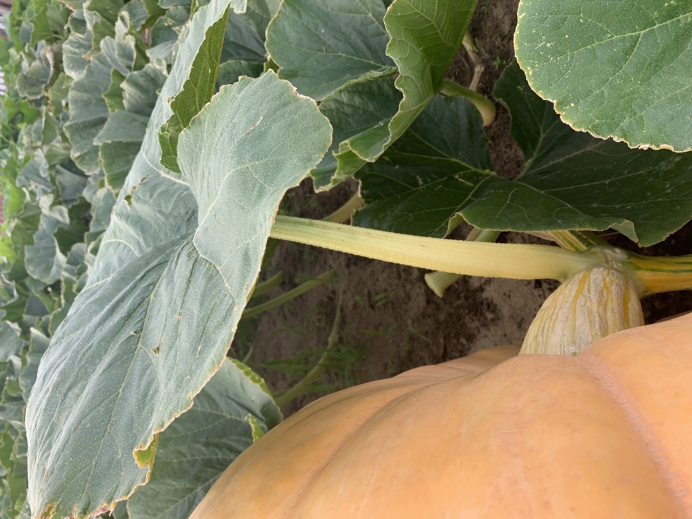 I like turning over the main so the leaf is on top and I must leave the secondary that's attached to the fruit (SLACK ) and don't dead head the main because your going to need the new growth late season. I removed 6 vine bores from the 1260 wolf and have powdery mildew from running the sprinklers on the crown I also sprayed fungicide two days ago should have been two weeks!!! The 1260 wolf est weight @ 1078 lbs and 32.6lbs per day was 40 and as high as 49 for the first eight weight checks they where 3 days apart