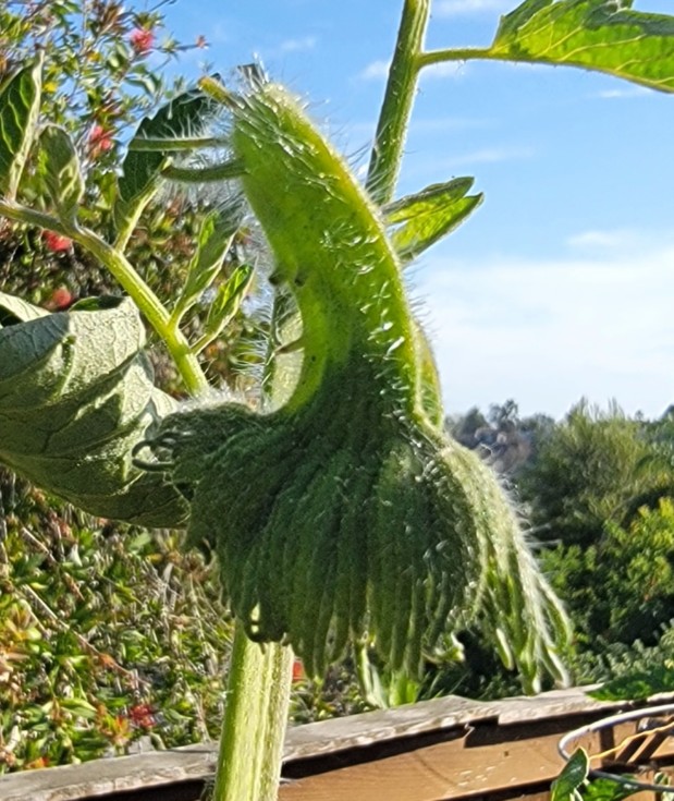 An unexpected 9.06 Brown bloom very high up, truss 6 or 7. Lost count. I typically don't let a plant go this far. It has a ribbon stem & the blossom shape is like a clam.