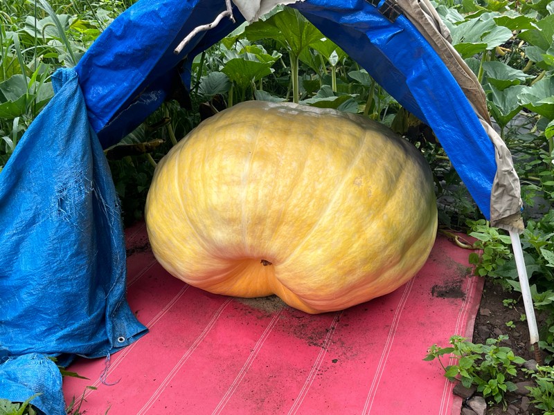 The 1864 will be happy to have that one cut off. The main pumpkin is now over 500 pounds so pedal down now to put on some more weight.