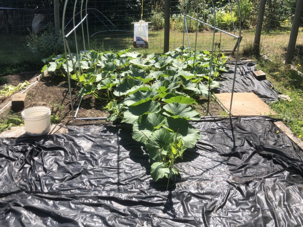 In the better late than never category, the prizewinner plant is bursting with growth and has a pumpkin set on the main vine.