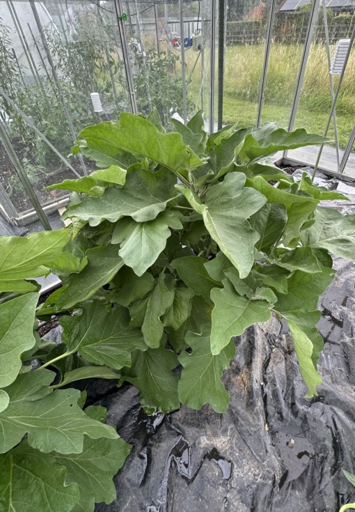 Aubergines pruned less than most, looking healthy enough - hope that converts to fruit size. Just one to make a final selection on.