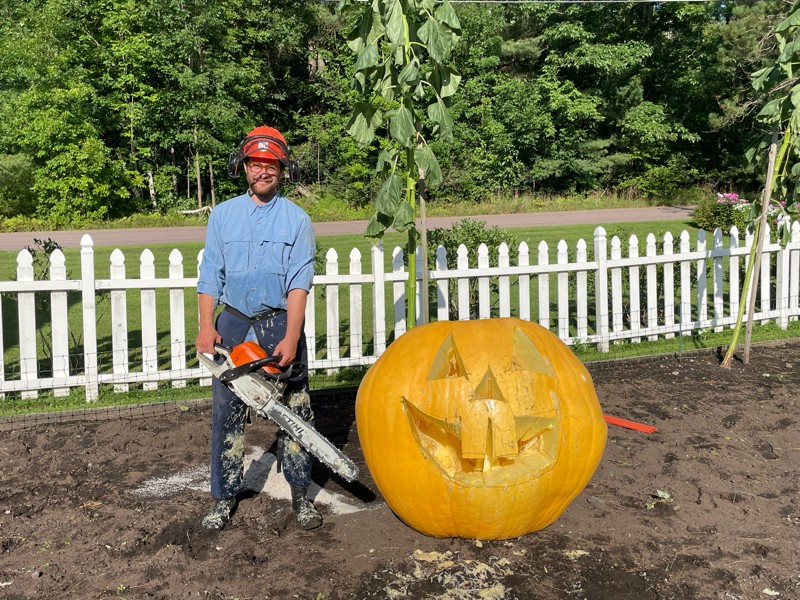 Our friend Nash stopped by to saw up the tree that fell in our backyard. After the tree he offered to �help� with Julia using his Stihl chainsaw. Of course we thought it was a good idea. Here is Nash's carving before Julia met the compost pile. When mother nature throws you lemons remember that life is short and make lemonade!