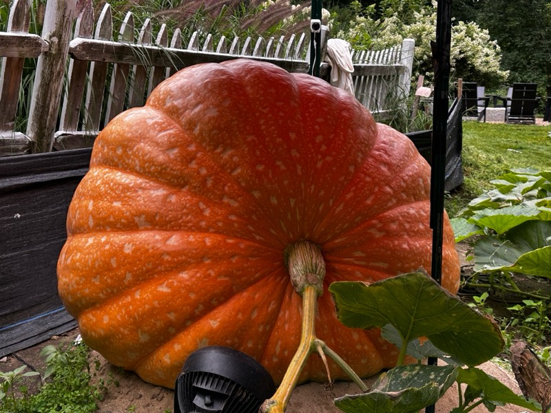 My 1197 Swenson is producing quite the beauty this year with it. This pumpkin is estimated at 730 pounds with a deep orange color especially on the stem side. I plan on taking this one to the Vermont weighoff on September 21st