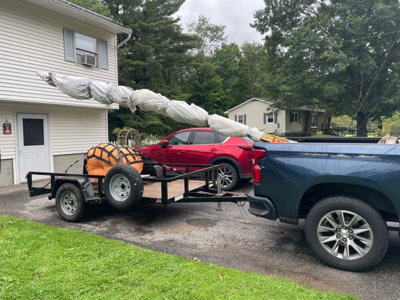 Here we are loaded up with our 17'7� sunflower hanging out the back.