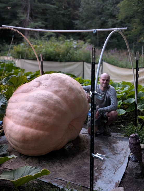 Meanwhile, Lightning Cub (2480 Graham) is 70 days old and estimates at 1357 lbs. The plants both look rough, but there's pumpkins growing!