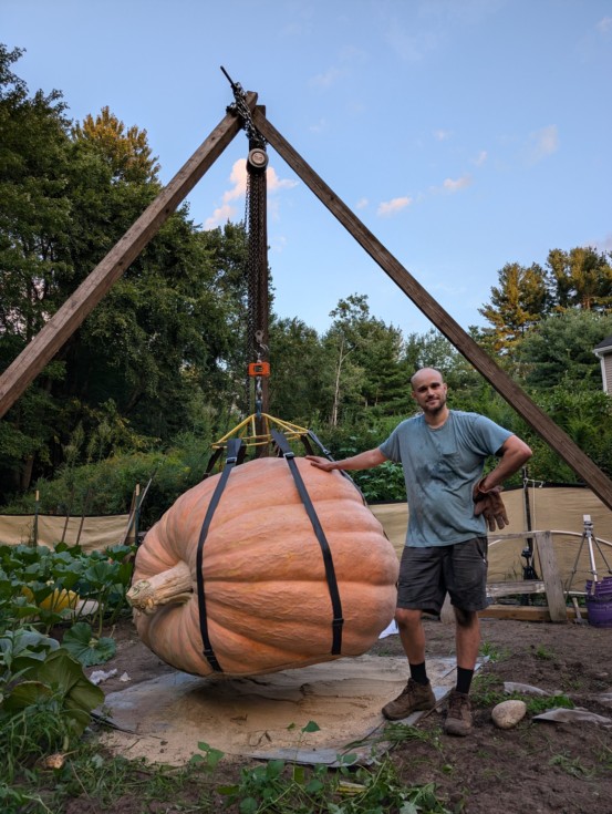 Thunder Shark (1832.5 Graham) started getting squishy, so I decided to get an unofficial weight. She estimated at 1768 lbs and weighed in at 1837lbs. She (kind of) lasted a month since her blossom end split, and it would have been nice to get her to a weigh off, but feels good to get her in the air with a weight. My second heaviest pumpkin ever (unofficially).