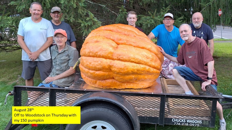 All loaded up for the Woodstock Fair Weigh-off on August 29th, with my 150 Challenge pumpkin.