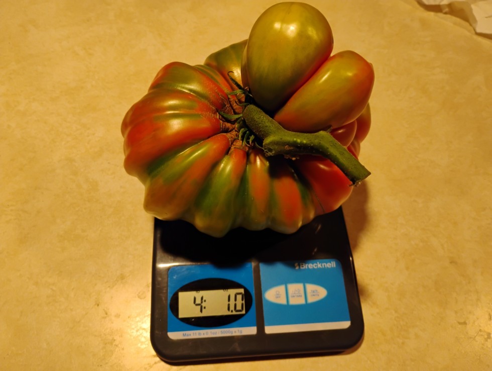 Here is my second tomato entree for the tomato contest. 4.1 lbs. Yes the top part is soundly attached
