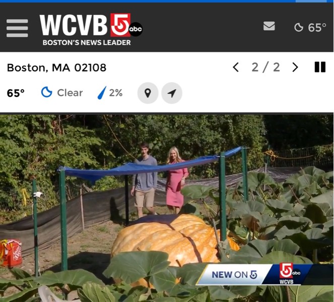 Here's the link to the news article if you are interested! https://www.wcvb.com/article/giant-pumpkin-grower-hopes-to-squash-the-competition-at-topsfield-fair/62073791