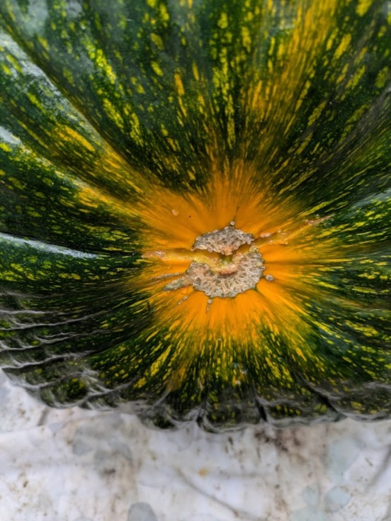 This was going to be my 1 big field pumpkin this year but a deluge of rain proved too much for it. Should have cut it off... oh, well.