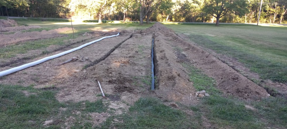 I finally started putting drainage under my front yard patch. Rented a walk behind trencher, ( not fun and incredibly sloooow ).