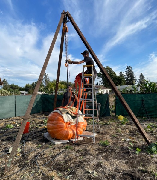This is the gantry I built last year. Worked great, but I only had to lift 1107lbs. Has anyone lifted 2000+ pumpkins with a setup like this?