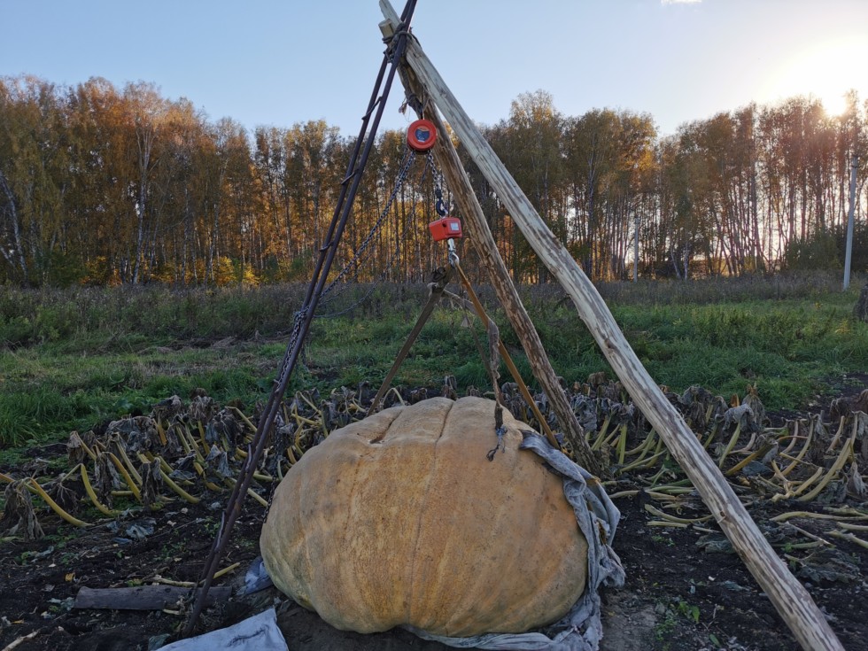 Today I finally found the time to weigh the pumpkin. It was not easy to do this. The slings that I used last year couldn't stand it and broke. But I managed to lift the pumpkin and fix the weight. I was just about to take out my phone and take a picture when the sling snapped. My 959 is now 1495 Lomakin. The pumpkin turned out to be 5% heavier than the estimated weight. A personal best has been achieved.