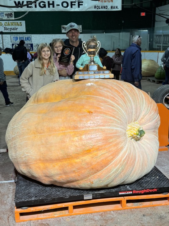 Blake's pumpkin Jasmine won at the Roland Pumpkin Fair today with 2004 pounds! The Roland Pumpkin Fair is where it all started for me, Dad always wanted me to bring a big pumpkin up to Roland so today we did! Being able to have Briar, Blake, and Harper with to celebrate was extra special, and having Chris with was great too! We'll see if we can finish the year out good in Stillwater next Saturday!