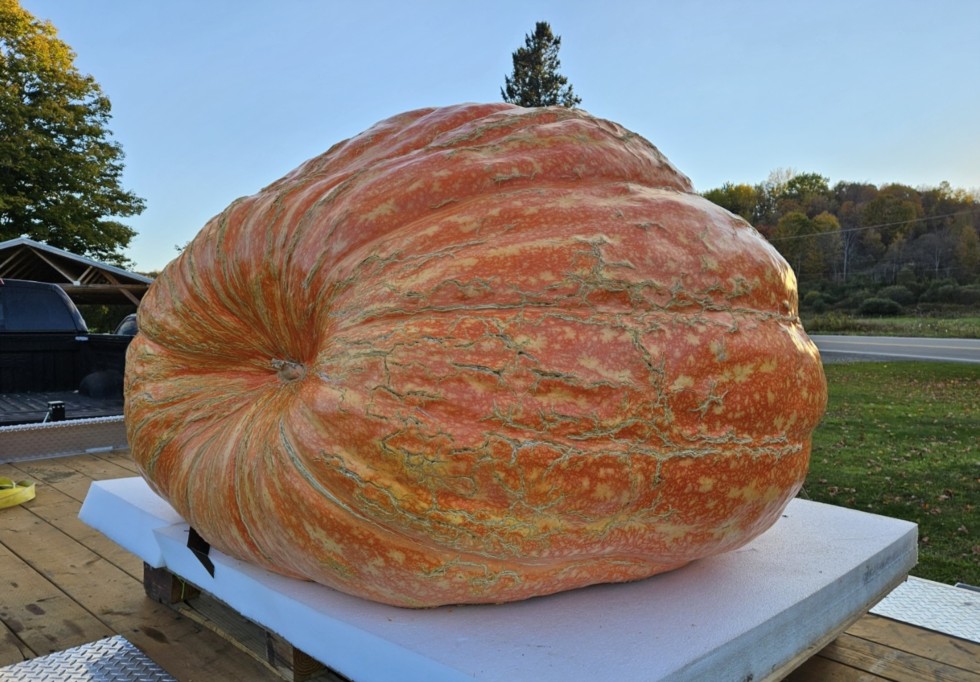 Here's a look at the blossom end of the 2225. Over the last month, this half of the pumpkin started going from mild cantalouping to somewhat aggressive skin cracking. The key is keeping it dry once that starts to have a chance at avoiding rot.