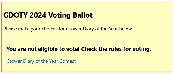 I have updated the rules for voting to allow any active user with at least 5 grower diary entries in the past 20 years to vote!
