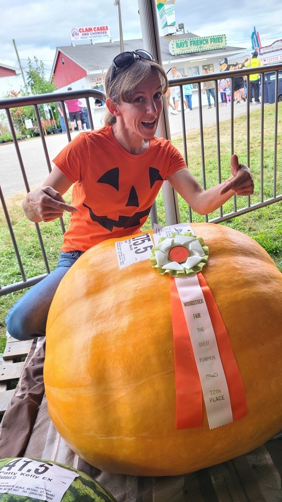 My pumpkin at Woodstock. If anyone has any insight on why I would have a white pumpkin and an orange pumpkin from the same mother pumpkin, please let me know. I had 2 seeds in the packet and I assumed both came from the same pumpkin listed, but one plant gave me white and the other orange. Alex and I are both stumped as to how this can be?