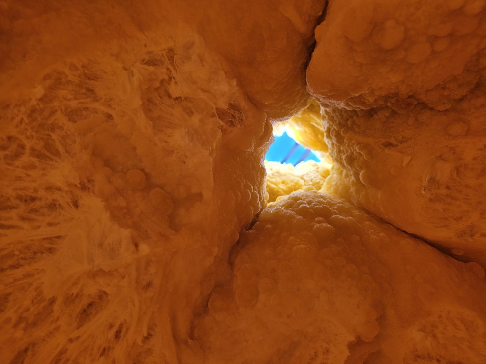 When I was pulling the seeds out of it, one of the carvers told me to look up. They had to cut the stem off as part of the carving, and this is what I saw.