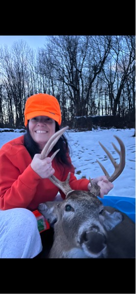 With the Pennsylvania rifle season underway I split my time last week between hunting our old farmland behind our house and the local hunting club that I belong to. The cold weather made the walking tough and noisey and beside an early morning visit from a coyote only some small deer were spotted so I didn't have much luck. While I was away at the hunting club Val sent me the cruel message that she decided to hunt behind the house and delivered the news she got a Buck.
