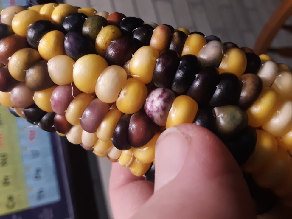 Pointing with my thumb to a white and purple one that is totally unique. I wonder what kind of ear it would grow. But there are many totally unique colors and half mixed colors. They might not grow anything special, but they could...??