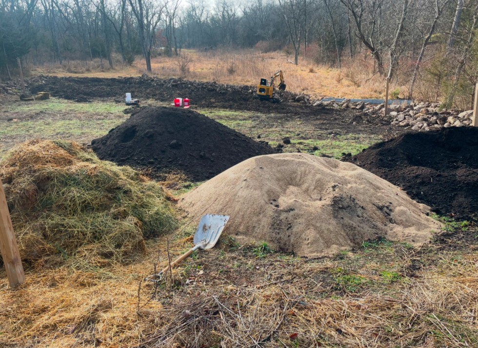 15 yards of Garden Soil (1/3 Topsoil+1/3Compost+1/6Sand+1/6 Manure) 7 yards of Compost (manure based) 5 yards of sand ~3 yards of homemade compost started-18bales (1/3 Alfalfa + 2/3 Straw w/20lbs Nature Safe 12-2-6(feather/bone/meat/blood meals w/NH3 Sulfate) + 5 lbs of kelp