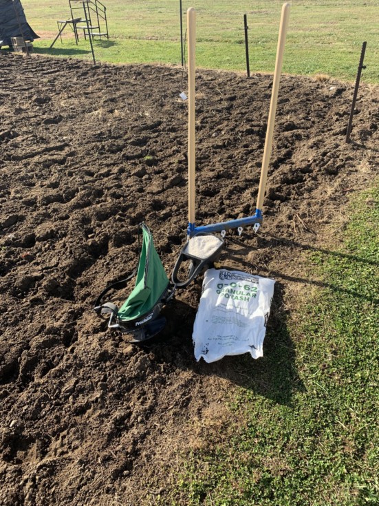 Patch has all the vines and leafs removed ,broad fork ,added potassium chloride and winter wheat , rye, also three loads of soybean straw