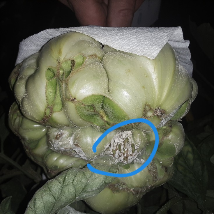 BER has healed nicely on this one. This makes this tomato growing thing less crazy & much more satisfying. This one is not more than a pound, but it looks impressive! Its the "sunflower" blossom on the 5.16 Greene. Been dealing with warm temps. Even warmer temps on the way. I did some foliar feeding which might have been a mistake I dont think it will help the fruit size but they were struggling to make good flower buds. We'll see what happens the recent foliage growth has been explosive, which may hurt the fruit size.