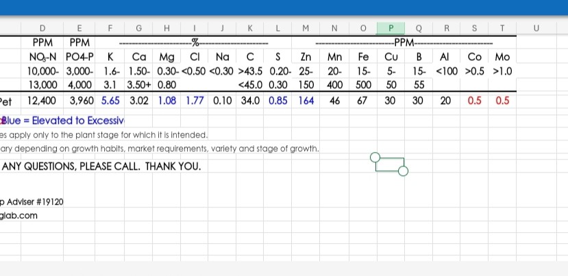 This test was done on a couple large healthy plants that failed to pollinate their first truss mega (a few weeks ago). It confirms some suspicions I had, such as high chloride. But it also shows some things I wouldnt have guessed.
