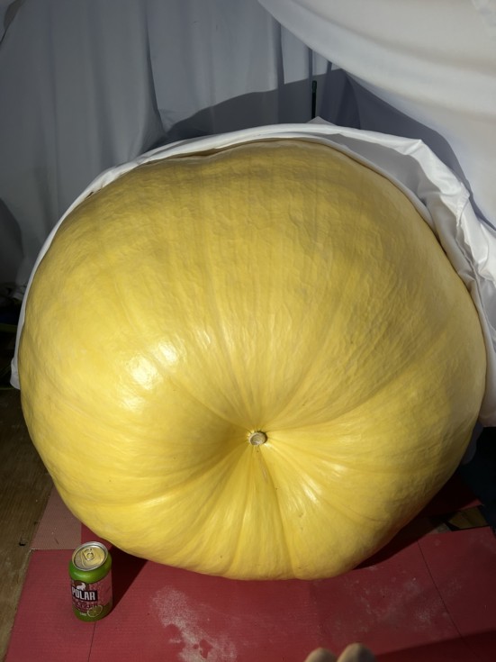 2198 Sperry Dap 25 Side to Side: 76in End to End: 73in Circumference: 110in OTT: 259in Est. Weight: 408lbs Growth Rate: 41.8lbs/day This measurement was taken in the morning which means that as of now this is almost certainly above my previous PR of 411lbs. Even if this thing splits tomorrow I'll consider this a win.