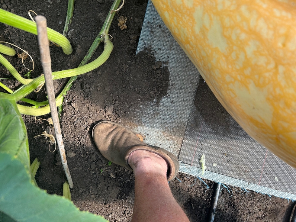 My buddy, Sam helped me pull it out about 4-5 inches today. This is the second time we have pulled it out. You can see by how the mill fabric is offset how far we have moved it. We will probably be moving it again in ten days or so.