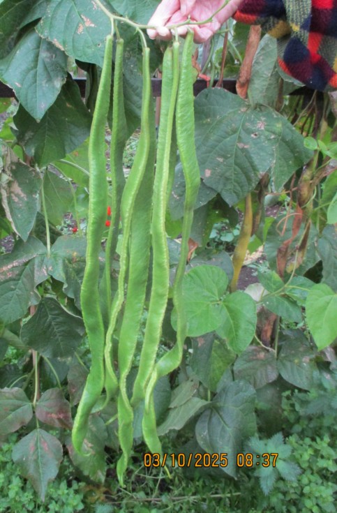 Back home from the shows and finding the Runner Beans are growing like they should have done in August. Too hot and dry then, you can water the roots but difficult to alter the atmosphere humidity.