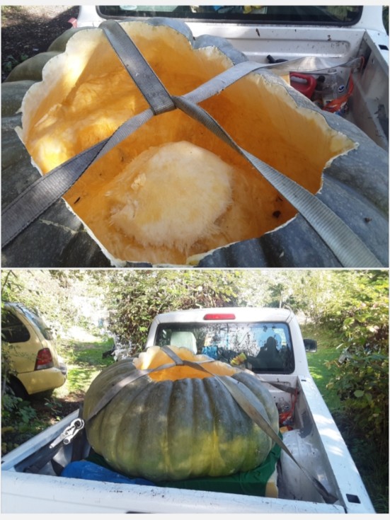 Top: the blossom underneath was tucked way up into the squash, so when it was carved the top stem area of the squash was resting on, and fused to, the blossom end.