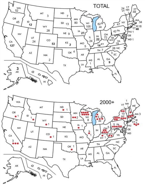 Chart (Total) 2025 Atlantic Giants grown in each state weighed at a GPC weigh off. This includes DMG and EXH fruit but does not include Squash. Chart (2000+) Quantity for each state of One Ton (2000 lbs) or greater Pumpkins weighed at a 2025 GPC event. Data does not include Joe's Squash or the two DMG fruit. (One each in Ohio and Connecticut).