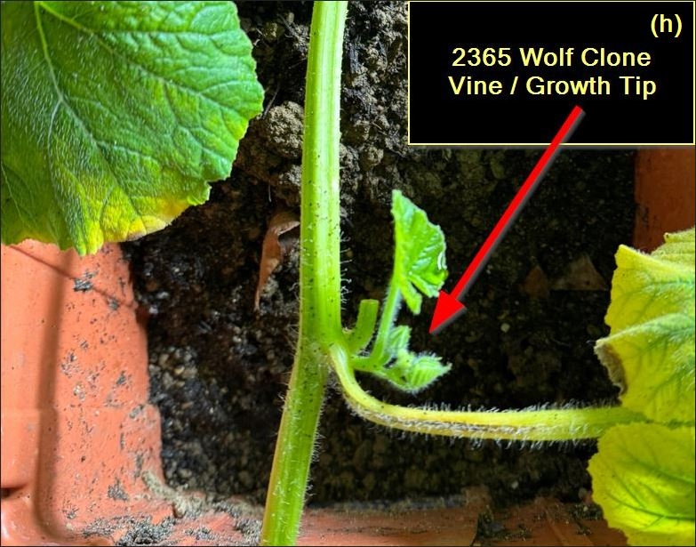 My youngest 2365 Wolf (h) Clone is finally starting to take hold and start a vine. This one wasn't exposed to the Aphids from my earlier clones...