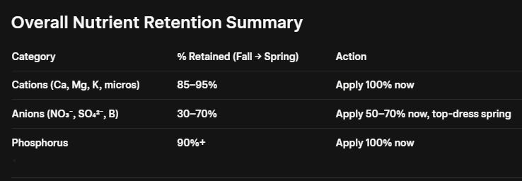 Thoughts on Soil Amendments given my low CEC. So, the CEC number is basically how well the soil will hold the nutrients that I give it. Given that my CEC is pretty low on these new patches that have never been planted, the question comes to mind, should I amend in the fall or wait until the spring. After some research, I think adding my amendments now is probably the best bet as it gives me more time to re-test and adjust if need be. So given my current CEC, 80% of the amendments that I put on now should still be held come spring in my loamy soil. (see attached screenshot). Seems it should hold better than I expected. So looks like I'll be amending this week if the weather permits, retilling, and replanting cover crops, lol.. Then I'll give it a few months and re-test to see where I'm at. Nitrogen isn't a worry, because I can feed that. My pH is the biggest concern, so I'll be home testing that a few extra times to make sure I get it in that sweet spot by spring!...