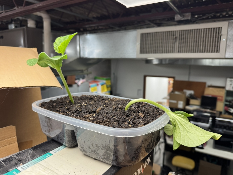 Couple of my test seedlings.. Apparently the basement lights at my office are not the proper Kelvin (temperature) for plant growth. See how leggy they are getting...