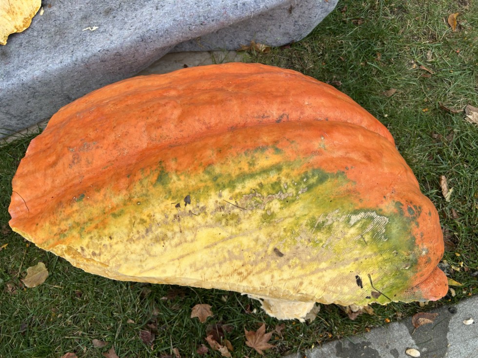 I've always wondered about how light exposure effects color. I get that the bottom will be white since it gets zero sun and the top will be orange but how do you explain the green ring around the margin? I've seen this pattern emerge pretty regularly on other people's pumpkins as well.